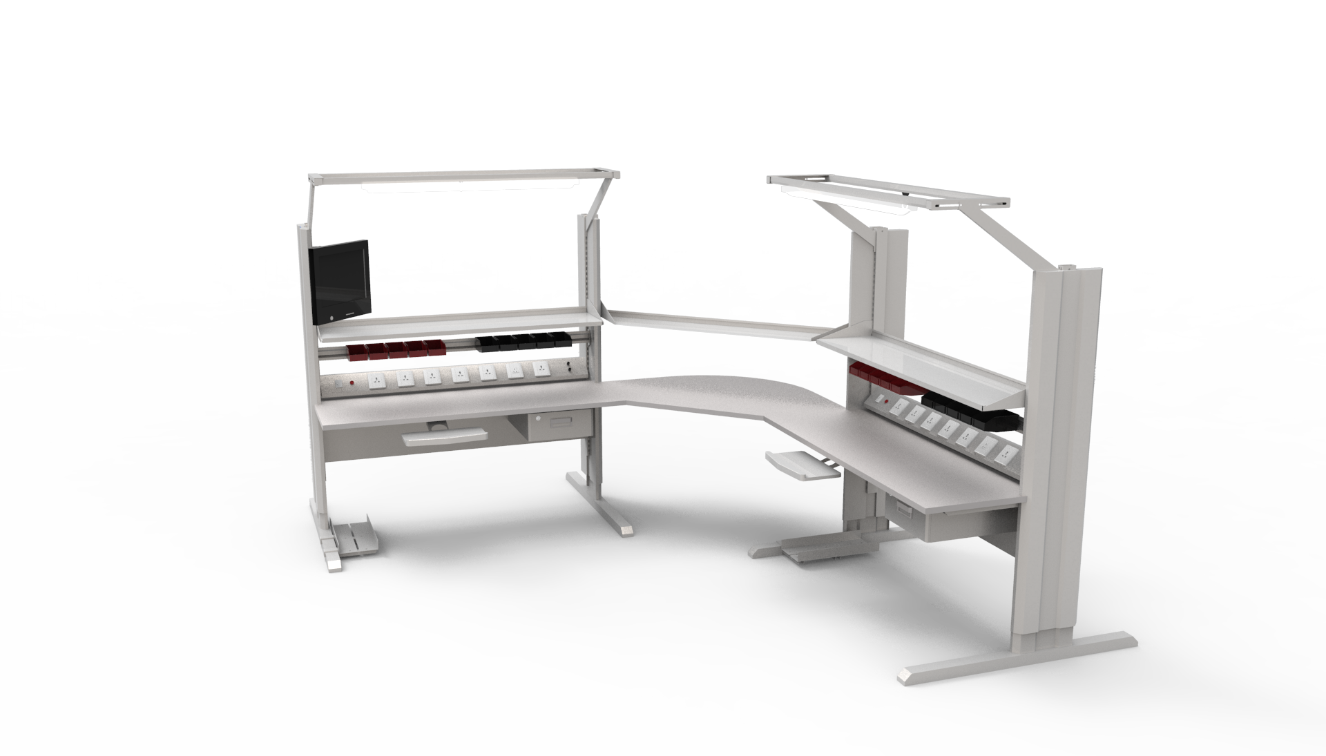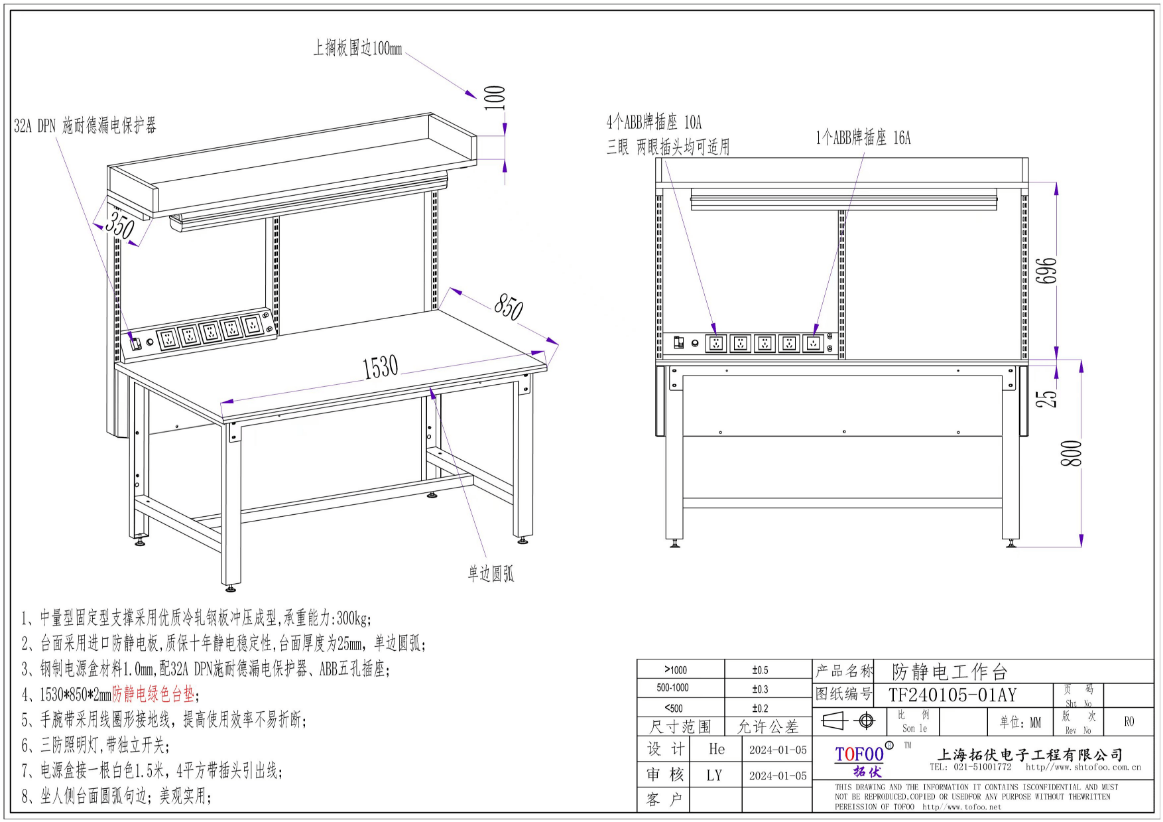 整體防靜電 ------拓伏提供的防靜電工作台不隻是台面防靜電,鋼制品部件均采用專業的防靜電噴塑工藝,達到整體防靜電的效果。